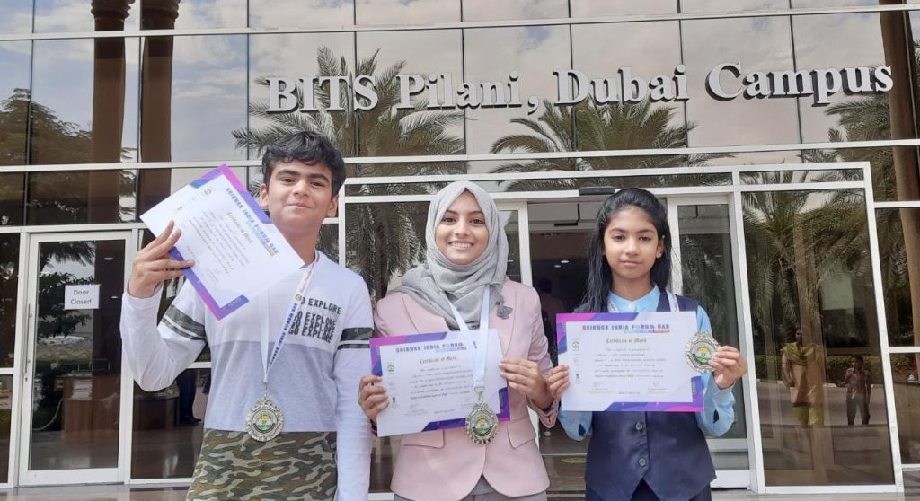 Three students from New Indian model school Dubai, qualified for Shastra Prathiba advanced level.