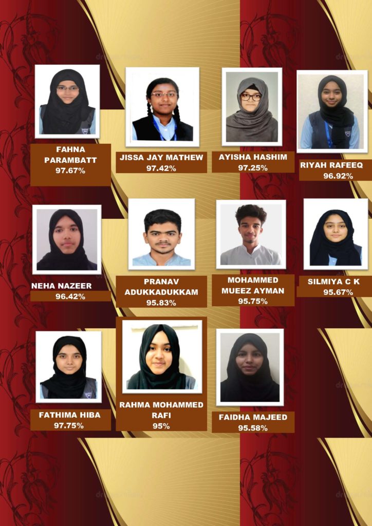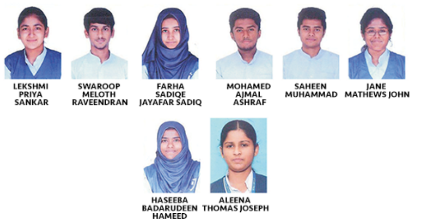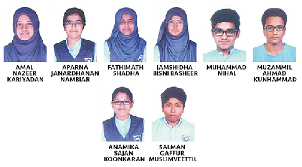 FATHIMATH SHADHA MELEKANDY KUNIYIL, FIDA RASHEED PANCHILI and JAMSHIDHA BISNI BASHEER stood 2nd with 9A+ and 1A whereas ANAMIKA SAJAN KOONKARAN got 9A+ and 1 B+