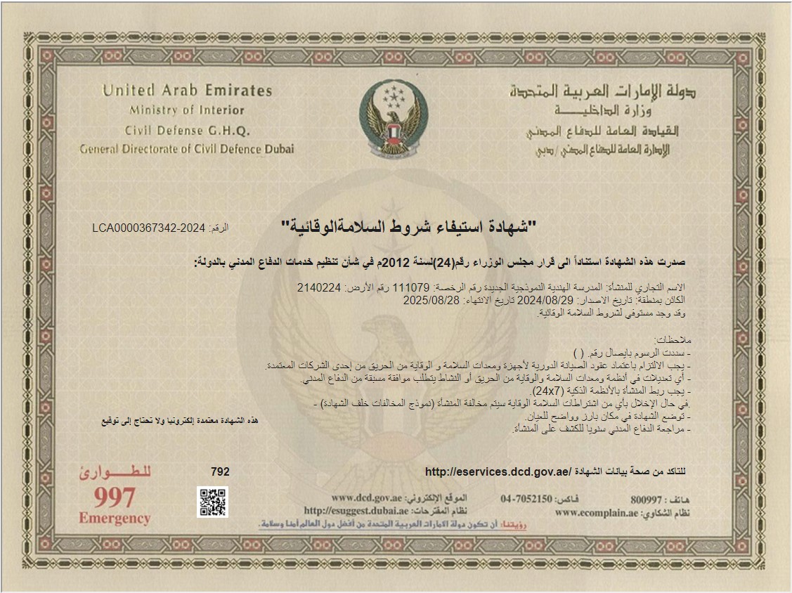 14 | Copy of Valid Fire Safety Certificate issued by the Competent Authority | |
